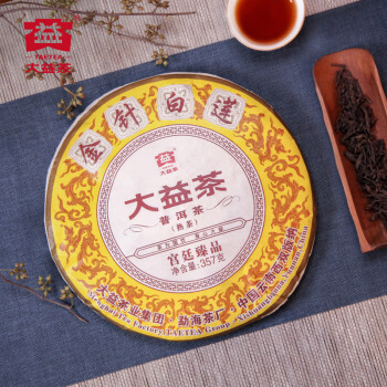 大益(TAETEA)普洱茶饼茶 中华老字号宫廷臻品熟茶 金针白莲七子饼茶357g 1901批次 |