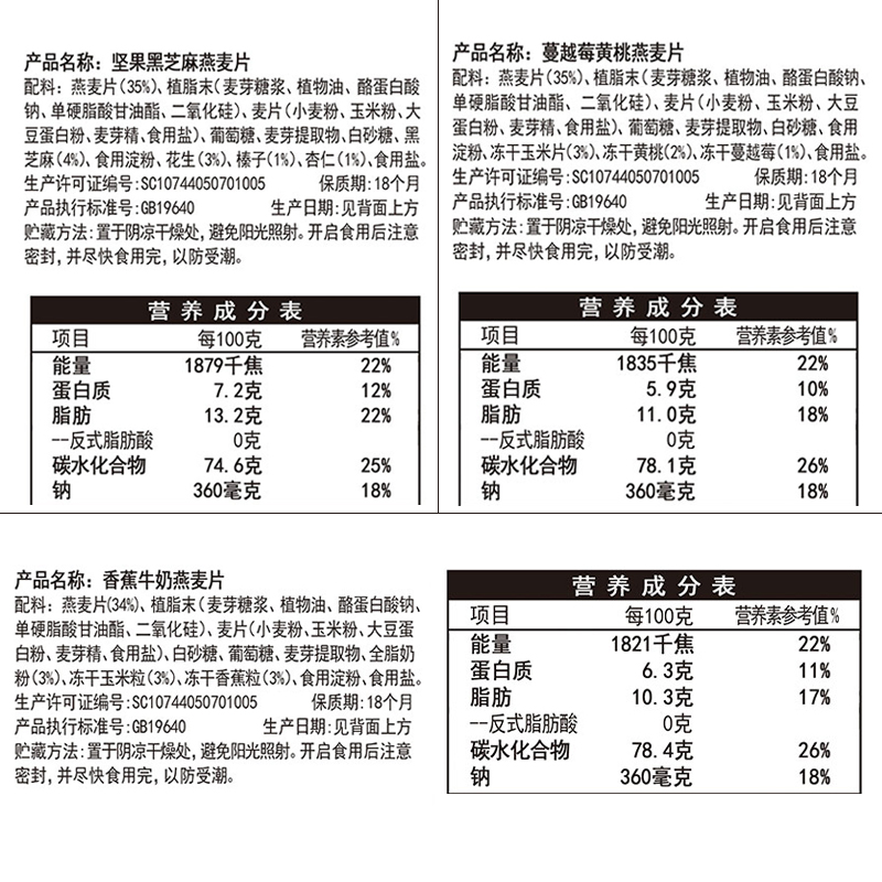 蔓越莓黄桃&香蕉牛奶&坚果黑芝麻燕麦片组合装 |