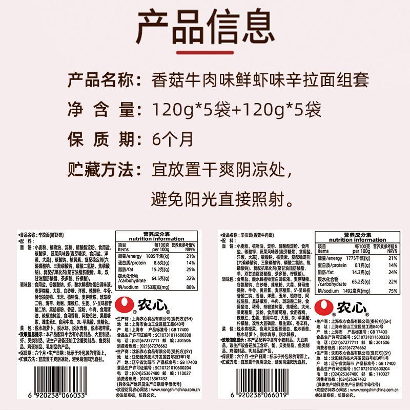 农心辛拉面香菇牛肉味&农心辛拉面鲜虾口味组合装 |