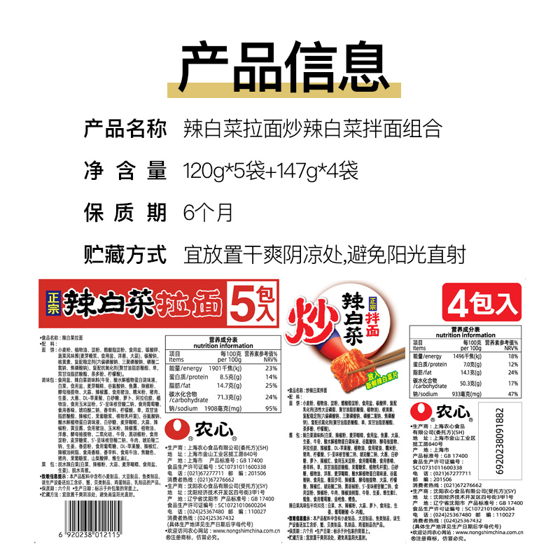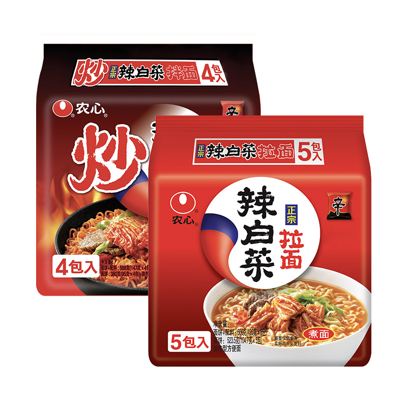 农心辣白菜拉面方便面&农心炒辣白菜拌面(含韩国切片泡菜)组合装 |