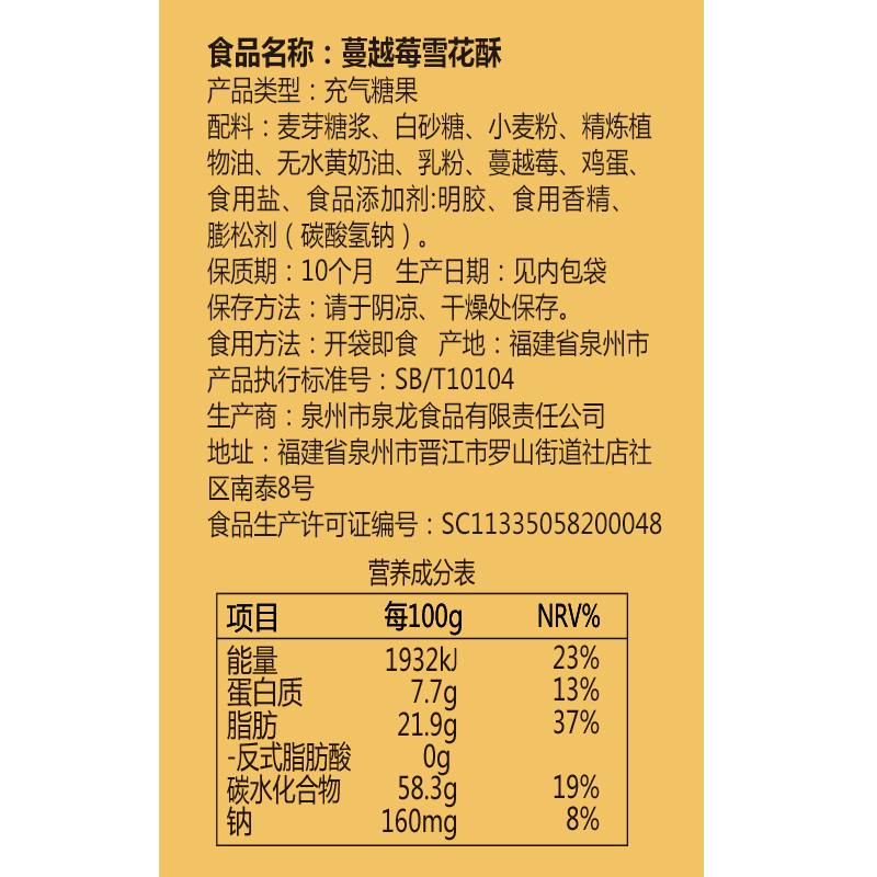 雅集蔓越莓雪花酥500g礼盒 |