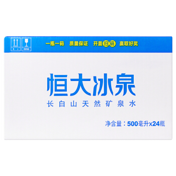 恒大冰泉 长白山天然弱碱性矿泉水 500ml*24瓶 整箱装 纯净水 |