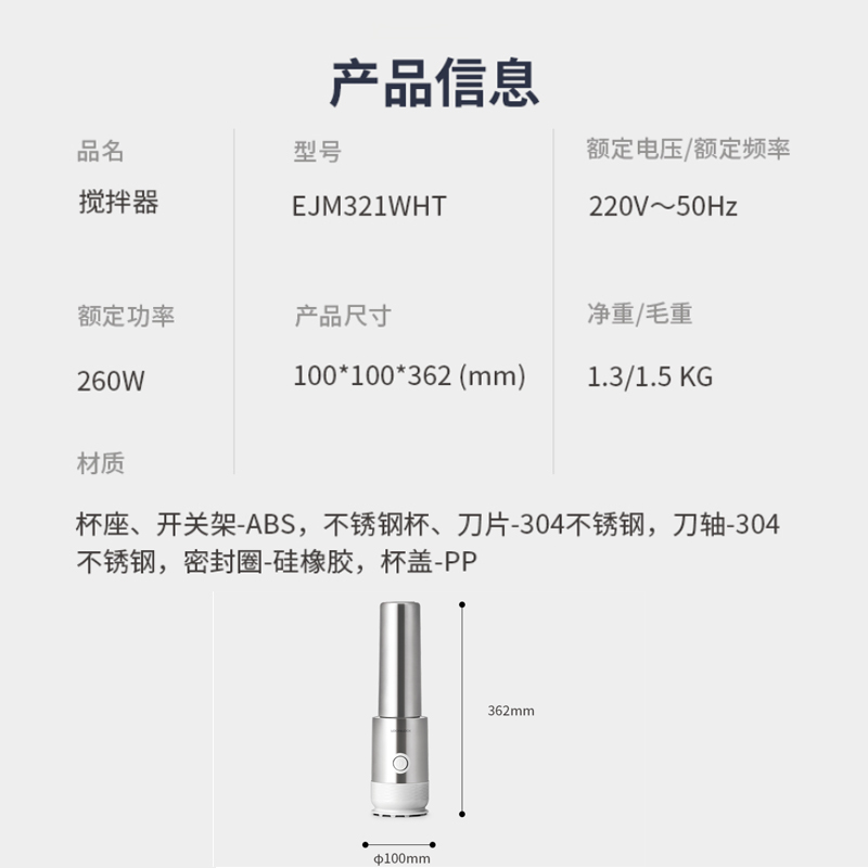 430ml家用小型便携式随身杯子水果奶昔果汁搅拌机电动榨汁机【不锈钢/不锈钢】 |