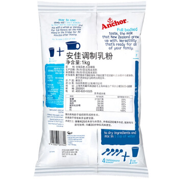安佳(Anchor) 新西兰原装进口 全脂乳粉 全脂奶粉 调制乳粉 1KG袋装 |