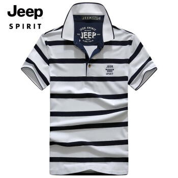 JEEP 短袖t恤男2020夏季商务休闲男装T恤男士条纹翻立领半袖体恤polo衫上衣打底衫潮流都市 0078白色 2XL |
