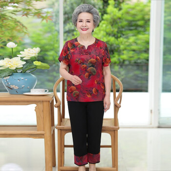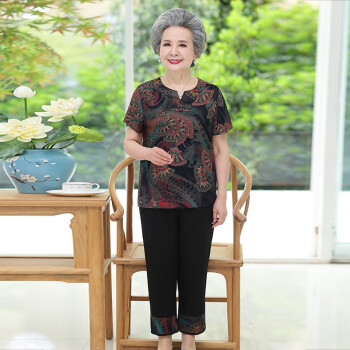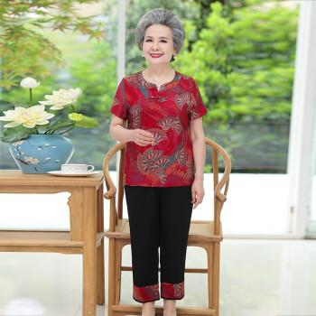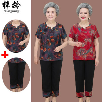 梓龄 中老年女装妈妈装2020夏季新款奶奶装夏装大码短袖套装60-70岁80老人T恤上衣裤子婆婆衣服 绿色杏叶花 此码勿拍,请拍对应尺码 |