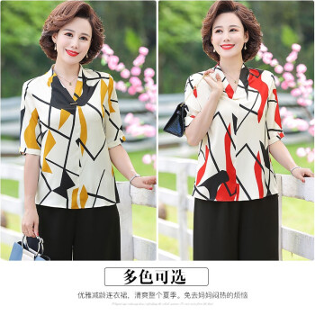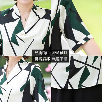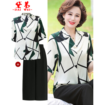 黛苇中老年女装妈妈装夏装洋气两件套装2020新款中年50岁短袖上衣中老年女雪纺小衫休闲大码女装 绿色(阔腿裤) XL(90-110斤) |