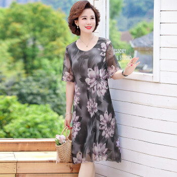 珝嬛中老年女装大码连衣裙女2020夏装新款宽松短袖中年妇女网纱裙大码休闲碎花裙遮肚妈妈装中长款裙子 1号色【紫色】 此码勿拍.请拍自身对应码数 |