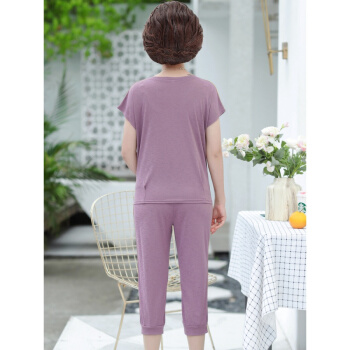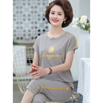 晳馥香中老年女装夏2020新款中年妈妈装夏装短袖T恤中老年大码上衣服休闲运动套装女装 紫色(套装) (请拍对应尺码) |