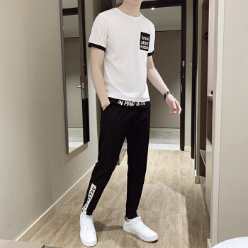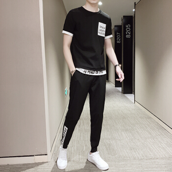男士短袖T恤套装夏季新款半袖t恤衫一套搭配帅气衣服短九分裤子男休闲运动套装男 903卡其 XL |