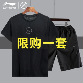 李宁运动套装男士速干短裤男2020夏季服饰健身服篮球服运动服饰跑步服衣服透气短袖 黑/黑(韦德) XL |