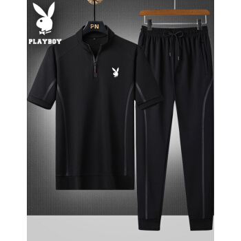 短袖套装t恤男2件套2020夏季新品短袖立领休闲T恤九分裤衫透气上衣短运动 ATD2868黑色 |