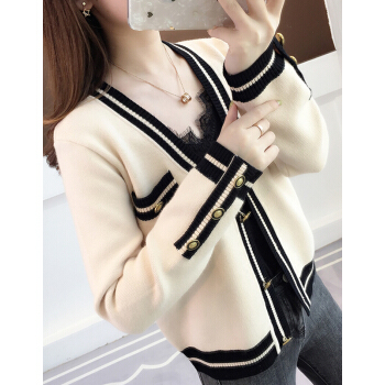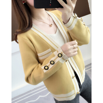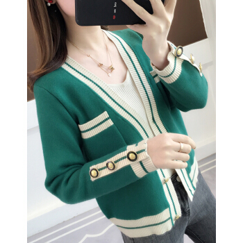 婪澈针织衫女2020秋冬女装新款韩版修身毛衣女显瘦洋气百搭开衫上衣女长袖 绿色 L |