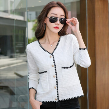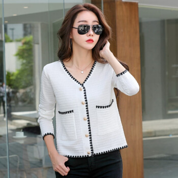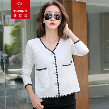 纤丝鸟 TINSINO 针织衫女2020秋季新品小香风撞色针织开衫宽松显瘦毛衣外套女 典雅白 请拍正确尺码 |