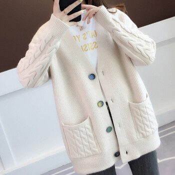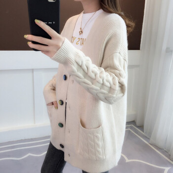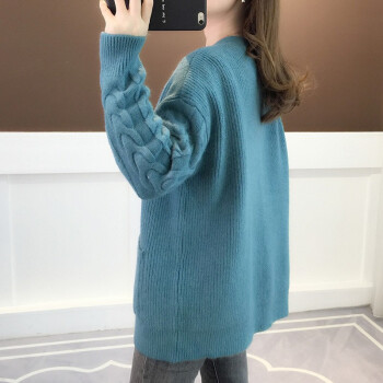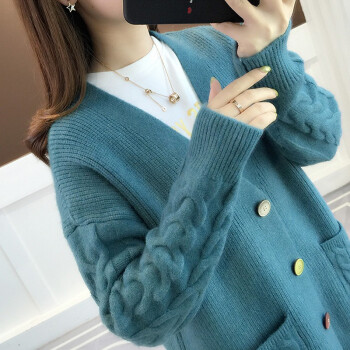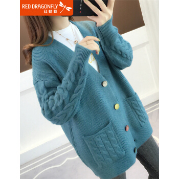 红蜻蜓 2020年春秋新款宽松纯色针织开衫女外搭慵懒长袖秋季毛衣韩版百搭休闲外套女 WL728 蓝色 均码 |