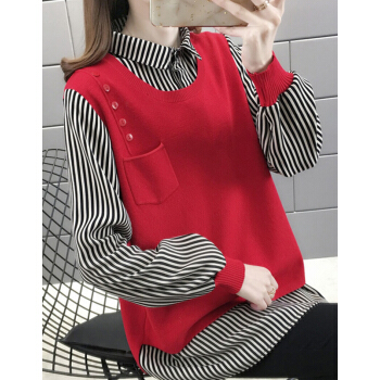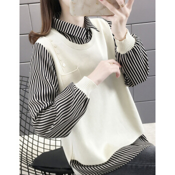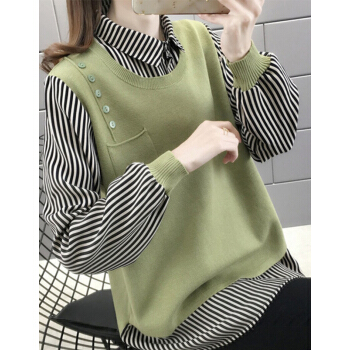 婪澈针织衫女2020年秋季新款女装薄款毛衣女宽松外穿上衣秋冬拼接针织外套 绿色 L |