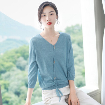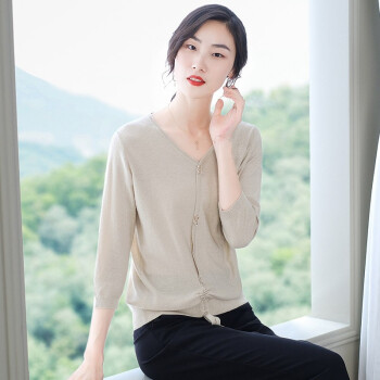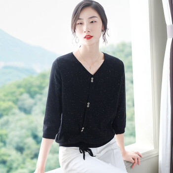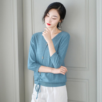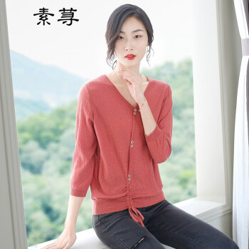素荨针织衫女V领亮丝上衣2020秋装新款薄款毛衣宽松七分袖打底衫 砖红色1213 M |