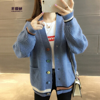 芈娜魅针织衫女开衫2020年秋季新款女装简约慵懒修身长袖针织毛衣上衣女 图片色 请拍正确尺码 |