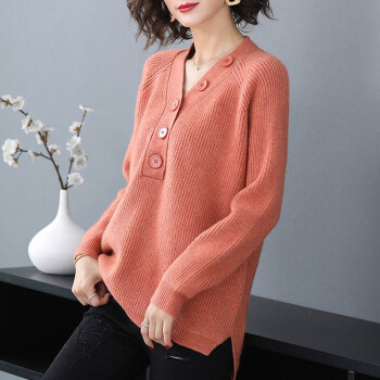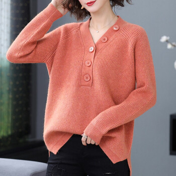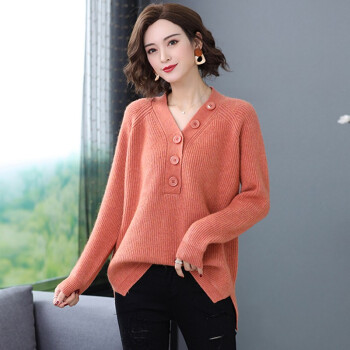 帕兰朵 针织衫女2020秋冬新款大码毛衣女宽松套头洋气V领针织打底衫百搭上衣外套 橘色 请拍正确尺码 |