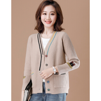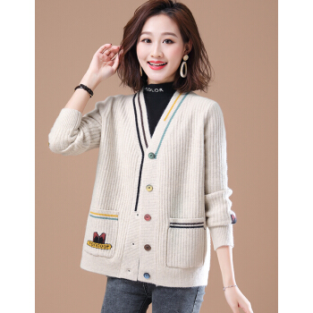 婪澈针织衫女020秋季新款女装短款毛衣女韩版显瘦百搭长袖开衫初秋外搭洋气毛衣外套春秋 浅灰米 L |