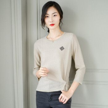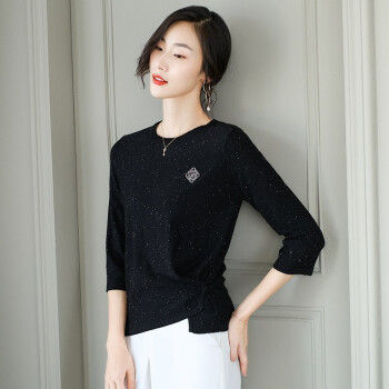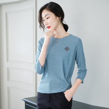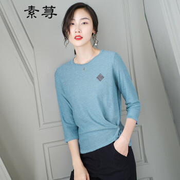素荨针织衫女短款亮丝打底衫2020秋装宽松上衣七分袖薄款毛衣 蓝色1208 M |