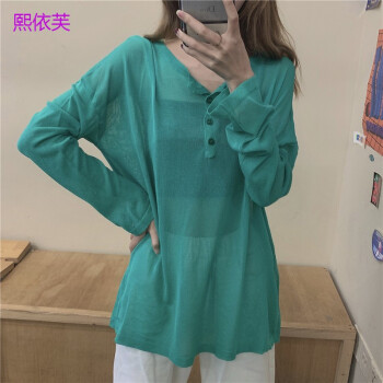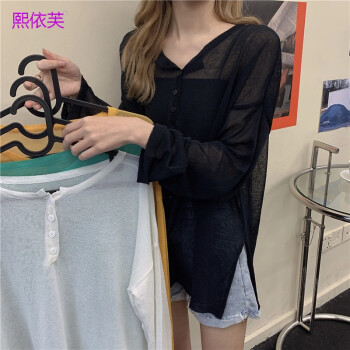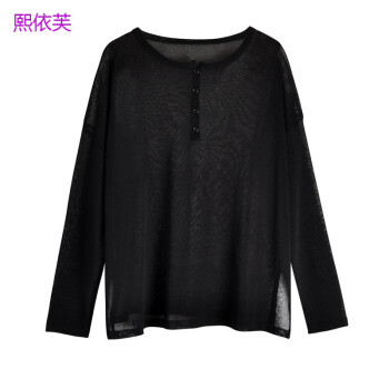 熙依芙针织衫女宽松外穿黑色防晒上衣女2020春夏韩版新款薄款套头洋气针织打底衫 黑色 均码 |