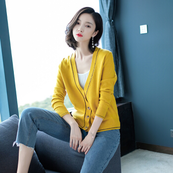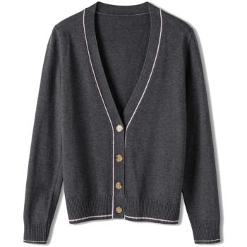 歌米拉 针织衫女开衫春秋短款上衣秋装2020年新款洋气外搭薄款女士毛衣小外套 灰燕麦 M |