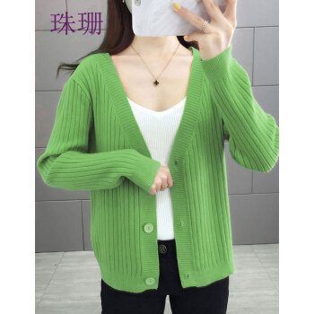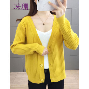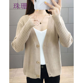 珠珊针织衫女2020新款春秋外搭毛衣小开衫外套女宽松懒慵风V领女装单排扣短款针织衫上衣 7306-砖红色 XL |