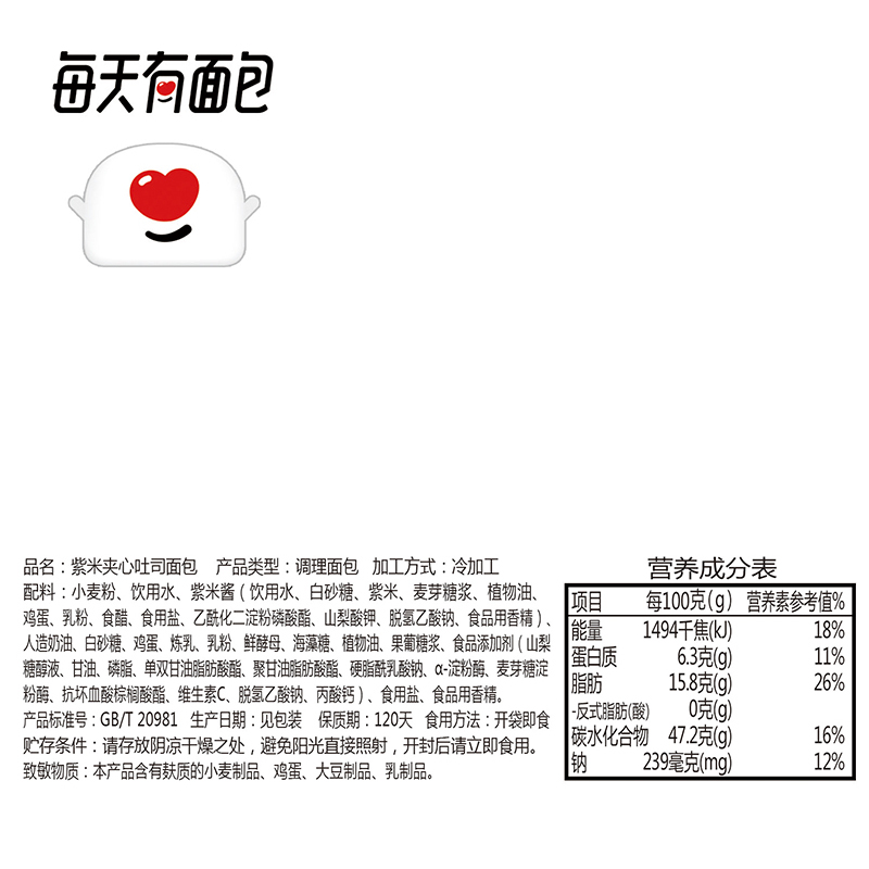 紫米夹心奶酪切片吐司面包 |