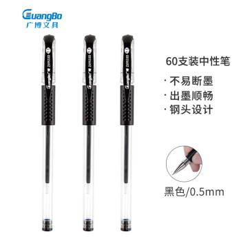 广博(GuangBo) 0.5mm黑色中性笔 办公签字笔 水笔60支装ZX9533D |