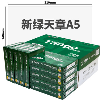 天章(TANGO)新绿天章70gA5(14.8cm*21cm)复印纸 中高品质款打印纸 500张/包 10包/箱(5000张) |