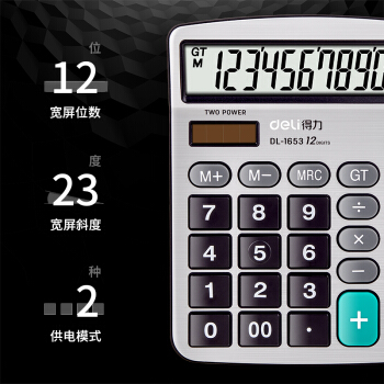 得力(deli)双电源宽屏办公桌面计算器 财务计算机 办公用品 银白色1653 |