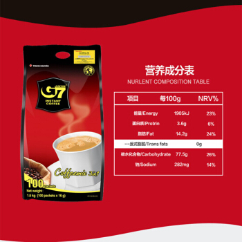 越南进口 中原G7三合一速溶咖啡1600g (16gx100条) |