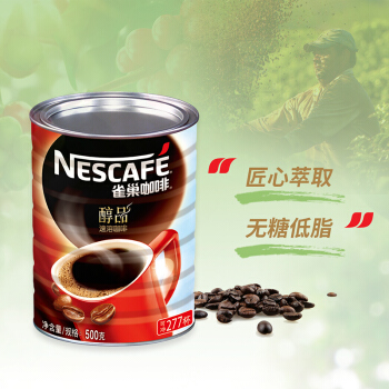 雀巢Nestle 醇品速溶黑咖啡 无蔗糖速溶咖啡粉 桶醇500g 可冲277杯 冲调饮品 |
