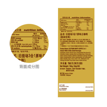 马来西亚进口 旧街场(OLDTOWN)原味20条盒装 三合一速溶白咖啡 760g 咖啡饮品 |