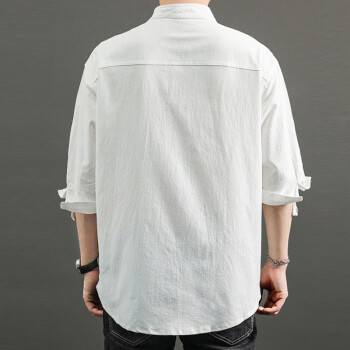 半双 短袖衬衫男2020夏季新款宽松大码中国风亚麻衬衣薄款男士休闲七分袖棉麻寸衫yym 黑色 M (建议100-115斤) |