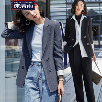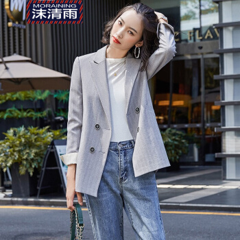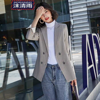 沫清雨小西装女英伦风时尚修身气质西服外套春秋款休闲百搭显瘦质感面料Y9609Z 单件深灰西装 M |