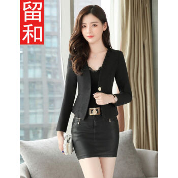 留和 小西装女2020年春秋季一粒扣短外套纯色修身职业女装上衣百搭外套工装X1196 黑色 L |