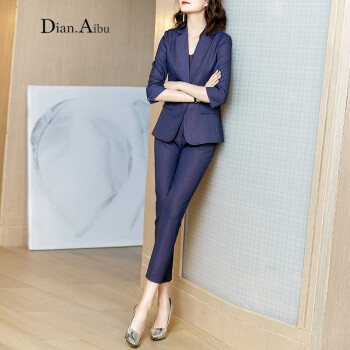 Dian.Aibu品牌紫色小西装女套装2020秋季新款气质职业西装领一粒扣正装两件套 紫色 S |