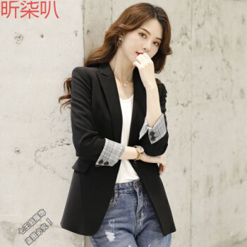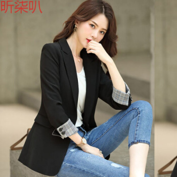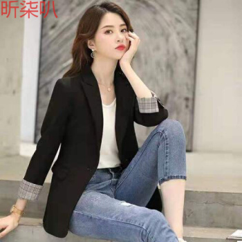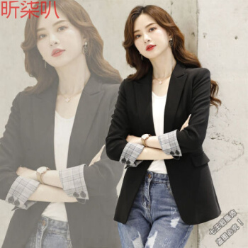 昕柒叭小西装女韩版2020新款春外套气质格子西服 黑色 L |