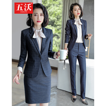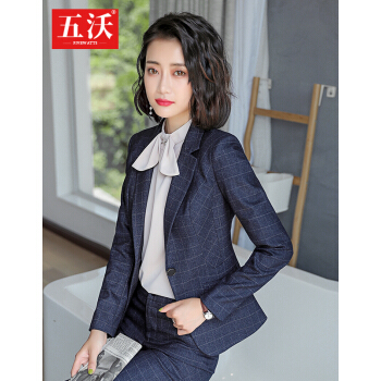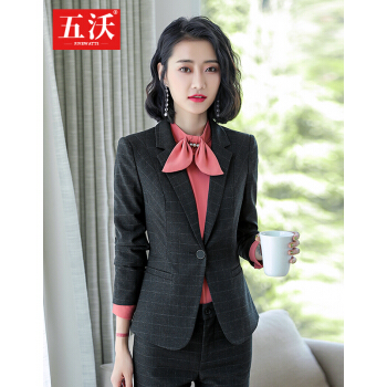 五沃 职业装女装套装小西装女时尚修身工作服英伦风ol气质商务正装格子西服 单件外套(备注颜色) L |