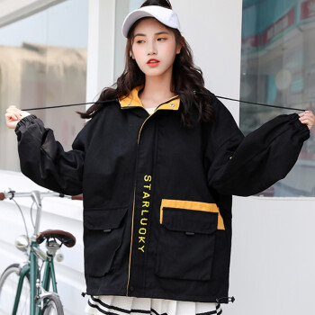 随影衣飘 短外套女2020秋季新品女装大码韩版百搭宽松bf棒球服工装学生外套女 黑色 M |