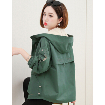 婪澈短外套女2020春秋女装新款短款工装小外套女薄韩版百搭夹克宽松棒球服 绿色 L |
