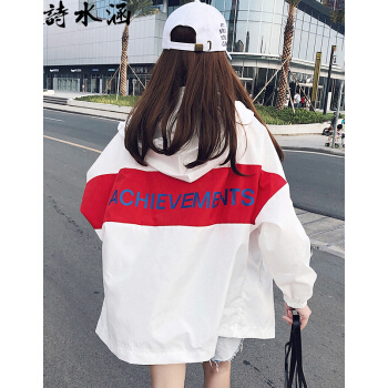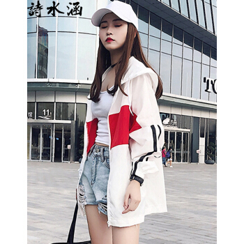 诗水涵 防晒衣女2020夏季新款韩版中长款防晒服女宽松学生百搭薄款外套女装时尚户外开衫棒球服防晒衫女 红色 XSS |