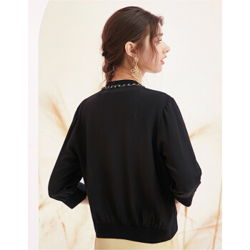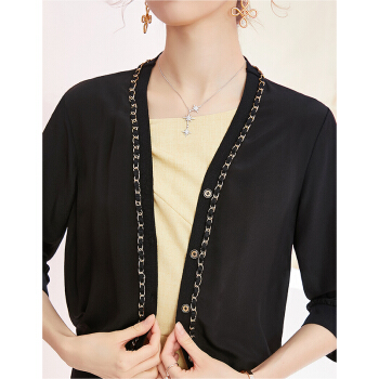 洛诗琳2020夏秋新款真丝开衫女重工链条拼接小外套透气百搭单品 付款4天发 付款4天发 黑色 XL |