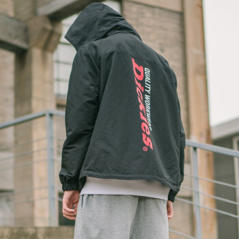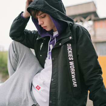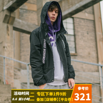 Dickies春夏男女同款连帽印花夹克 袖口可调节薄外套上衣 外套女 春装女 夹克女DK007301 黑色 S |