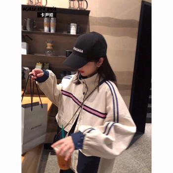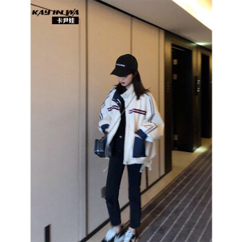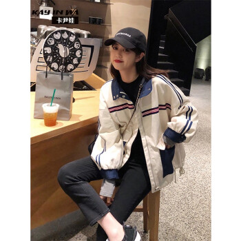 卡尹娃 短外套女2020春秋新款韩版学生女装复古港味工装休闲百搭宽松bf情侣棒球服 图片色 S |