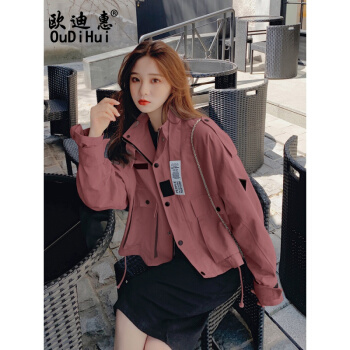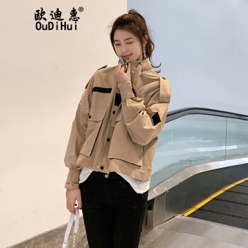 欧迪惠 工装外套女短款2020新款秋季女装学生韩版bf短外套女宽松时尚百搭洋气流行休闲风衣潮 浅卡其 S |