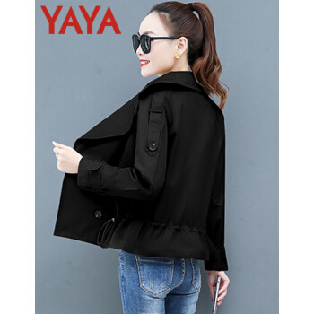 鸭鸭服饰yaya小个子外套女春秋季2020新款夹克休闲上衣春秋装百搭短款女士风衣 卡其色 L |