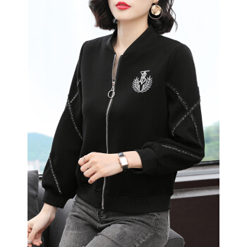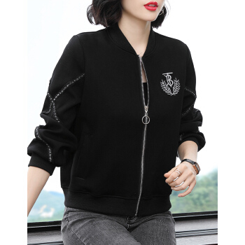 【精选好货】 韩可思棒球外套女2020春秋季新款女装女士短外套棒球服妈妈装春秋休闲宽松外穿上衣 黑色 请拍正确尺码 |